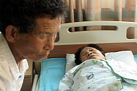 넷째 할머니의 부축을 받으며 겨우 병원에 도착한 첫째 할머니.